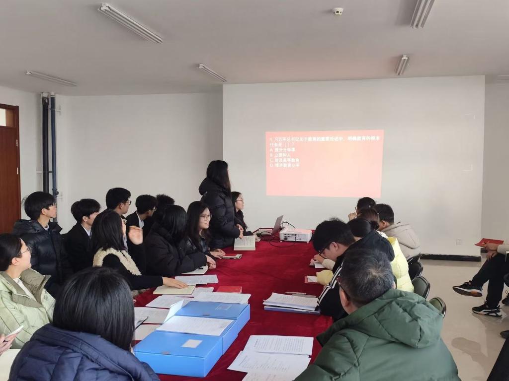 交流研讨中,教师党员王裕岚、毛敏霞结合太阳集团城娱8722学科科研攻关与课程教学实践,提出将关键核心技术研发案例融入课堂教学,助力学科发展与新质生产力培育同频共振。学生党员郭柄政则立足自身学业实际分享青年创新担当,他表示,作为肩负强国使命的青年学子,要始终怀揣科技报国的赤诚之心,以攻坚克难的锐气,用青春汗水书写属于新一代青年党员的责任与担当。最后,为检验党员同志的学习效果,会议设置了知识竞答环节,题目涵盖中共党史、习近平总书记重要论述等核心内容,党员们踊跃抢答、氛围踊跃,答对者获赠一本党章,在轻松互动中深化了理论记忆。
