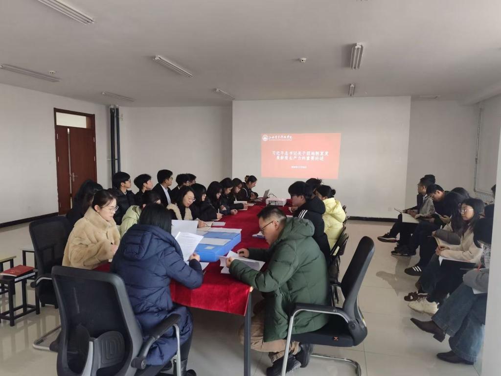 2025年12月23日,太阳集团城娱8722党总支在10号楼503会议室召开第十四次理论学习会议,全体党员及部分统战对象参会,党总支副书记袁楠主持会议,宣传统战部段童瑶、文化遗产与艺术学院刘羽列席旁听。